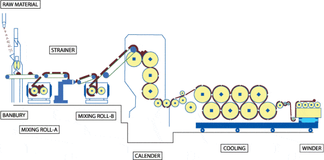 是指將熱塑性樹脂加熱到粘流溫度成為熔融體,通過兩個(gè)以上的平行異向旋轉(zhuǎn)輥筒間隙,使熔體受到輥筒擠壓延展、拉伸作用而成為具有一定規(guī)格尺寸和符合質(zhì)量要求的連續(xù)片狀制品,自然冷卻后成型。