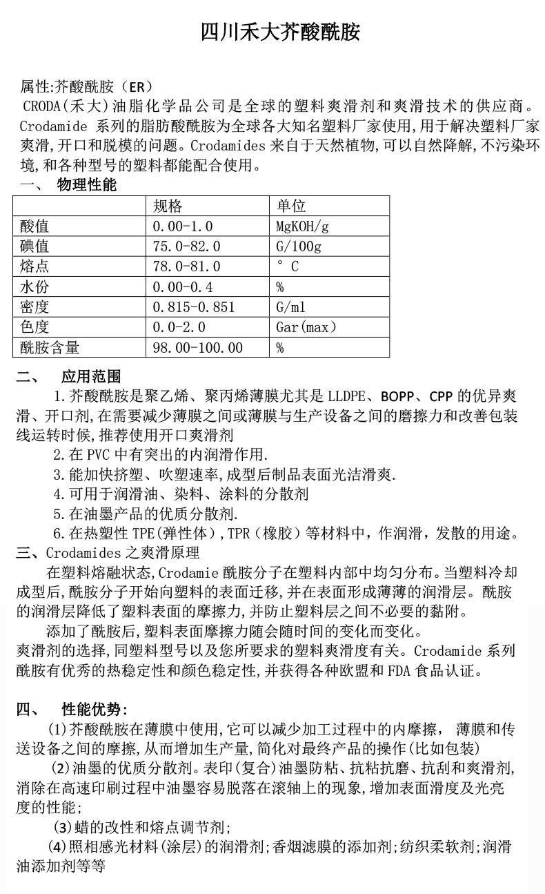 禾大CRODA芥酸酰胺 ER-CH-BE