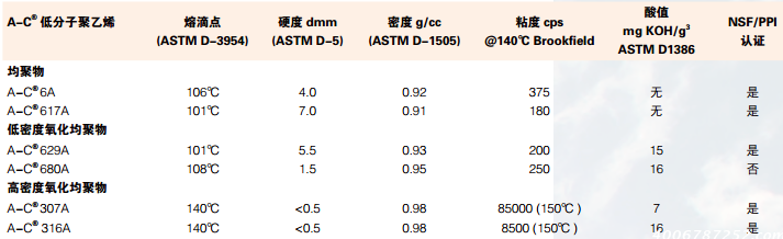 霍尼韋爾AC316A氧化聚乙烯蠟技術(shù)與應用,性能指標類型高密度氧化均聚物