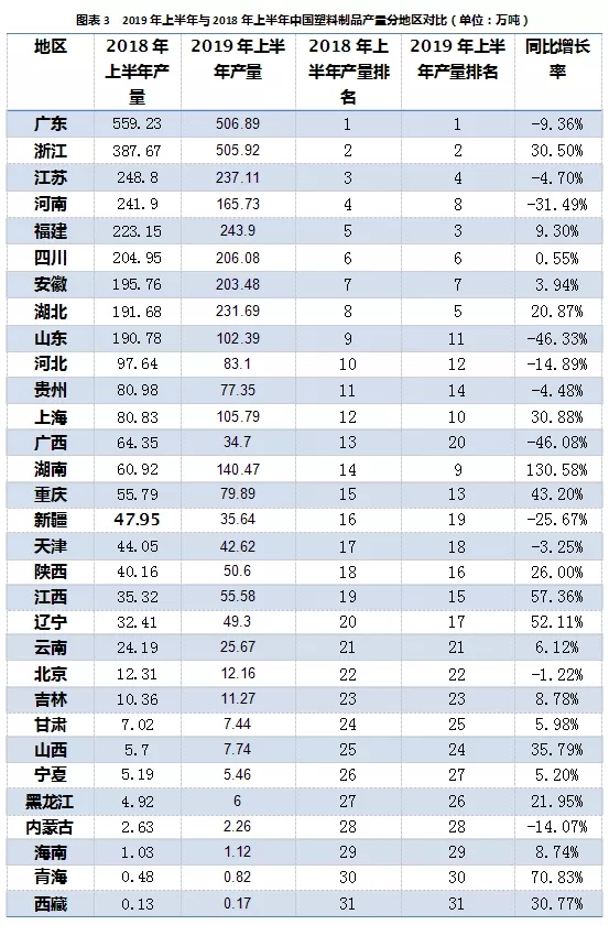 ????????2018年上半年產(chǎn)量前10名,山東、河北跌出2019年上半年產(chǎn)量前10,湖南、上海進入2019年上半年前10。