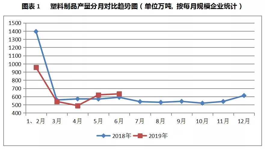 ????????按6月規(guī)模企業(yè)統(tǒng)計:1-6月中國規(guī)模以上工業(yè)企業(yè)塑料制品產(chǎn)量累計為3238.4萬噸,同比增長了2.6%;其中,6月份產(chǎn)量為633.1萬噸,同比增長8.8%。按每月規(guī)模企業(yè)統(tǒng)計: 1-6月中國規(guī)模以上工業(yè)企業(yè)塑料制品產(chǎn)量累計為3240.8萬噸,同比下降12.05%;其中,6月份產(chǎn)量為633.1萬噸,環(huán)比增長1.95%,同比增長7.16%。