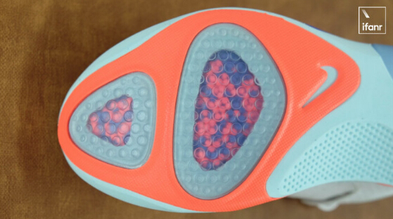 ????????在第一次穿著的時(shí)候,可以很明顯地感覺到,腳后跟和前腳掌兩處的緩震小球堆積在一起,高出鞋底平面頂住了腳底,這個(gè)時(shí)候就需要唱跳 rap 和籃球活動(dòng)一下,把聚集的小球門踩均勻,以獲得和腳型適配的獨(dú)一無二的緩震小球分布。