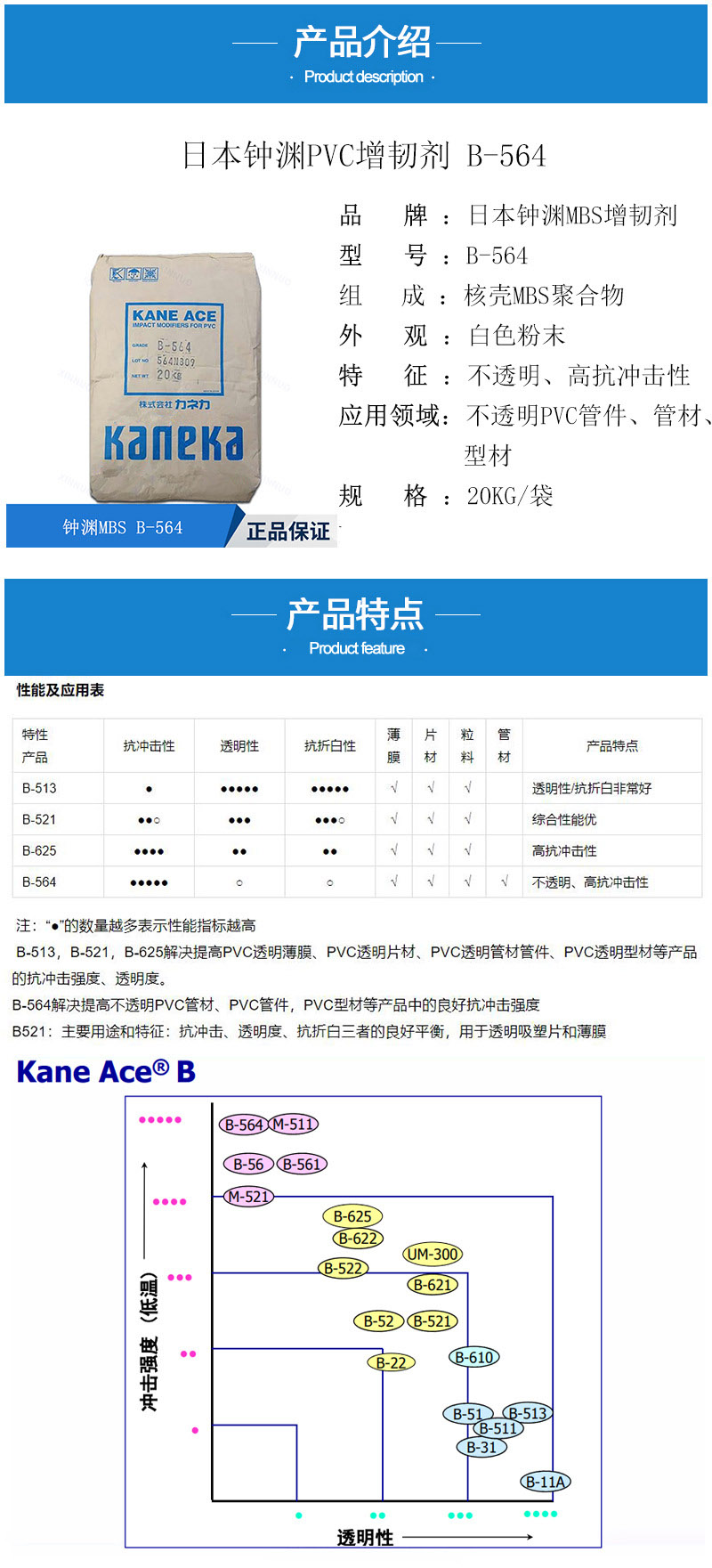 | 型號:KANE ACE B-564(B564) | 品牌:日本鐘淵kaneka | 有效物質(zhì)含量:99.5(%) |