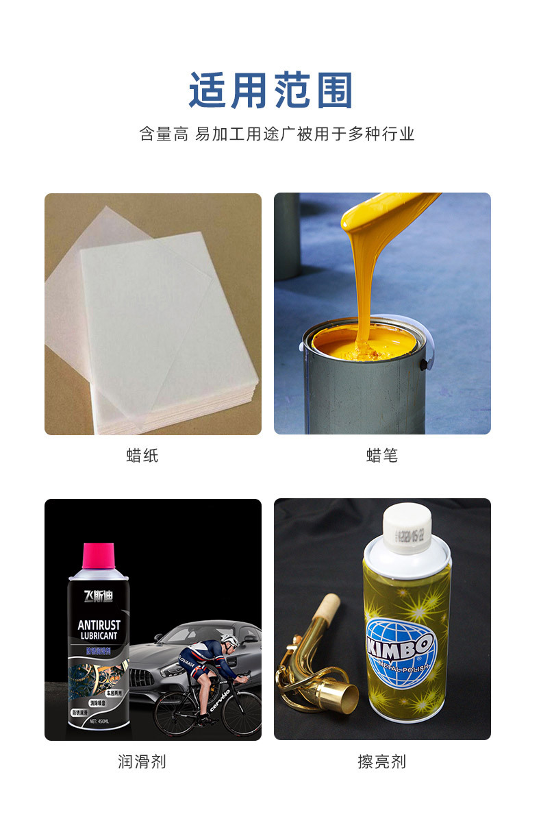 ·還適用于:蠟紙,油墨,色母粒,擦亮劑,潤(rùn)滑劑,耐磨劑,五金原模等。